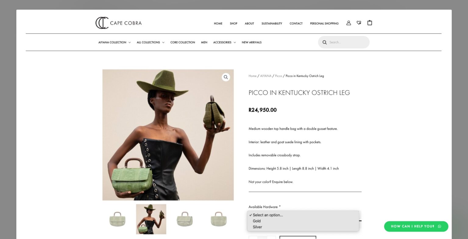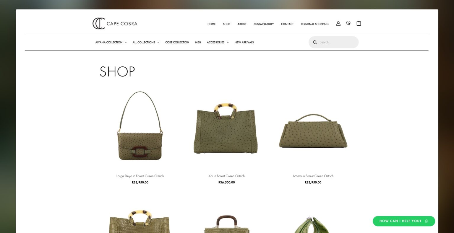 Cape Cobra Leathercraft has been creating exquisite exotic leather accessories since 1972. Our team crafted an e-commerce platform worthy of their masterful artistry, showcasing their collection of handcrafted bags, wallets, and accessories. The website design reflects the same attention to detail and sophistication found in every Cape Cobra piece, allowing customers worldwide to discover these timeless South African luxury goods with ease.