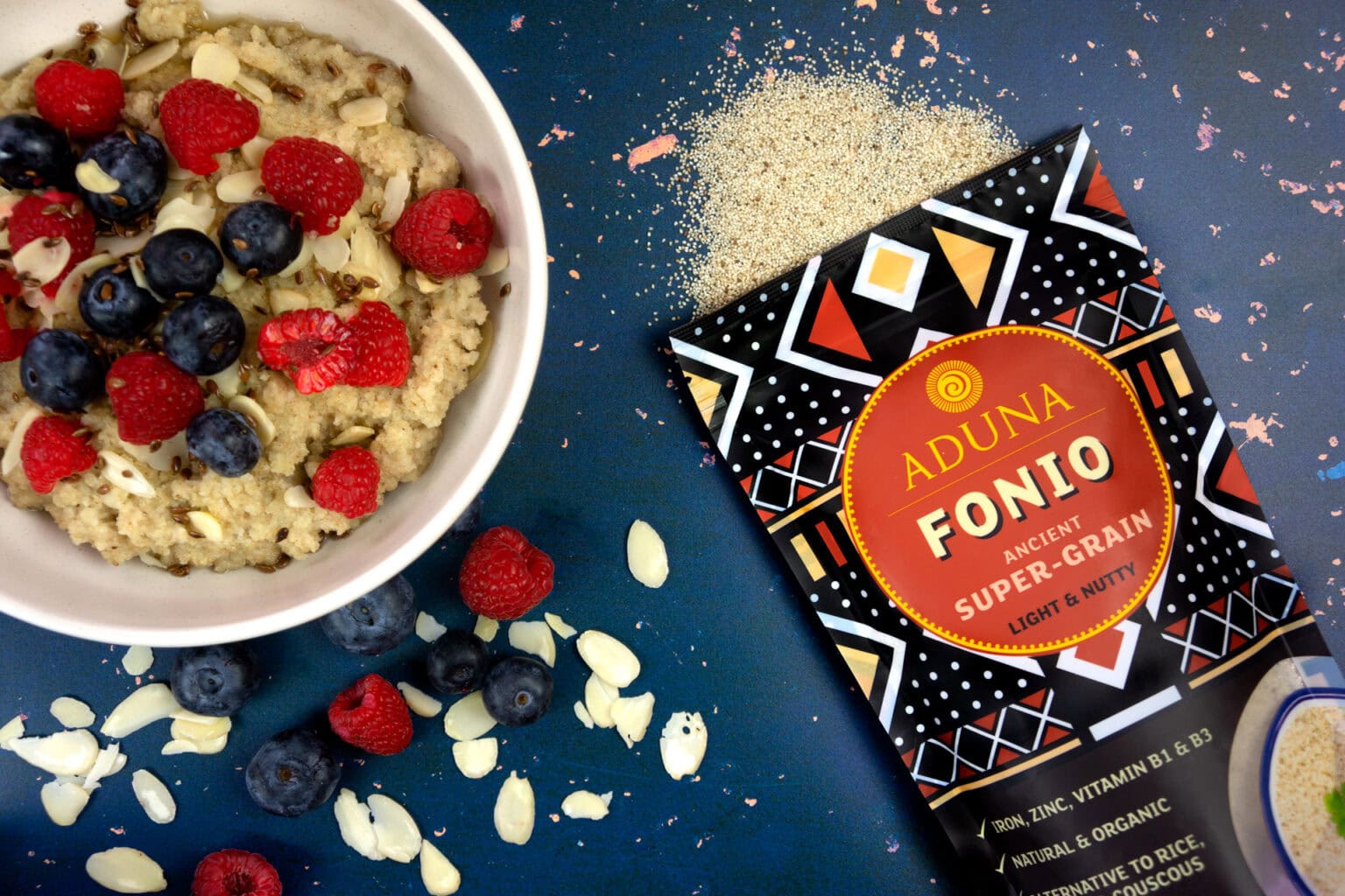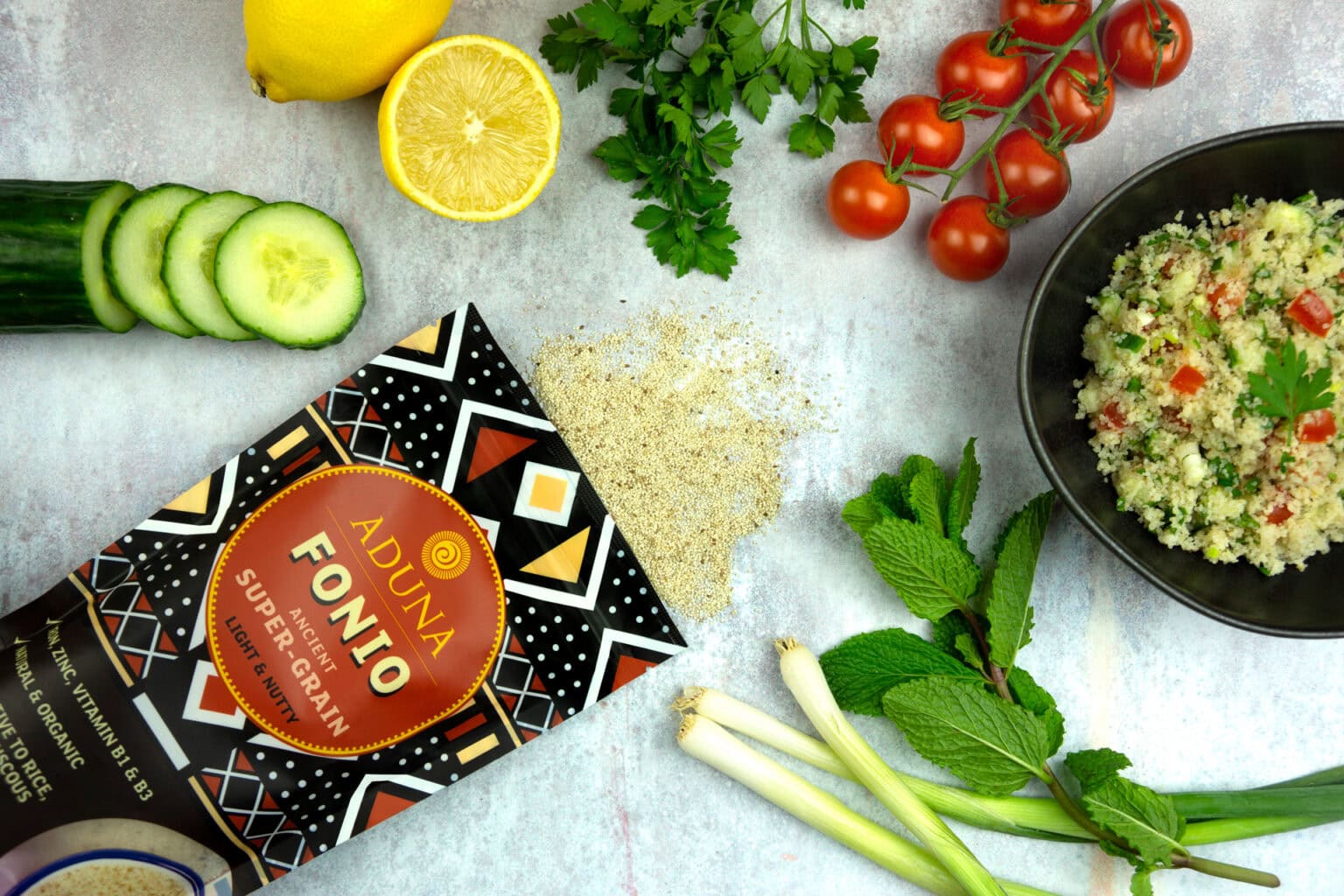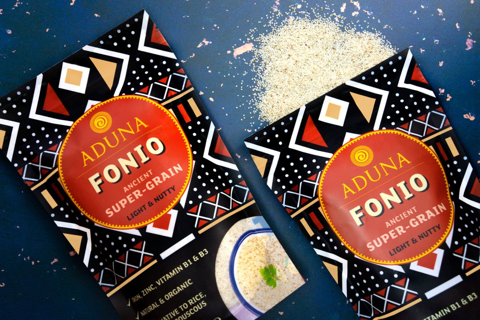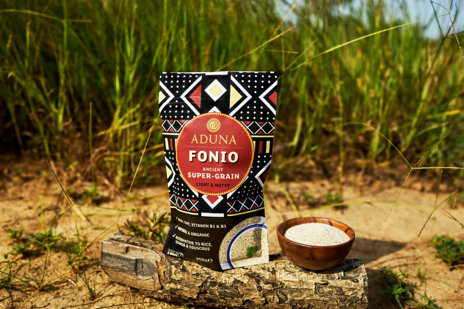 Packaging for Aduna Fonio Super Grain – an ancient Super-Grain that has been grown in West Africa for 5,000 years.