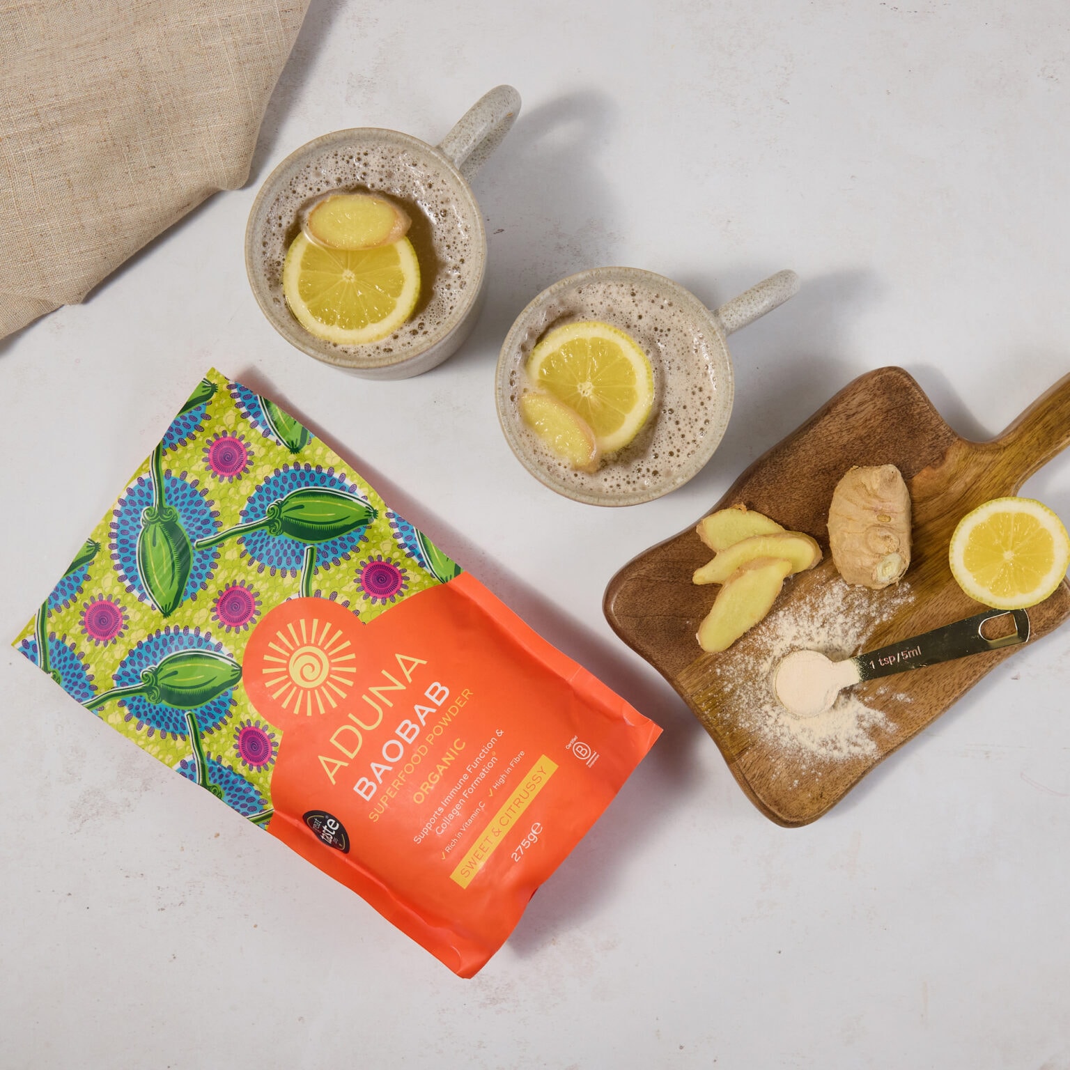 A general brand refresh for the original Aduna product line packaging, Baobab, Hibiscus, Cacao and Moringa superfood powders.