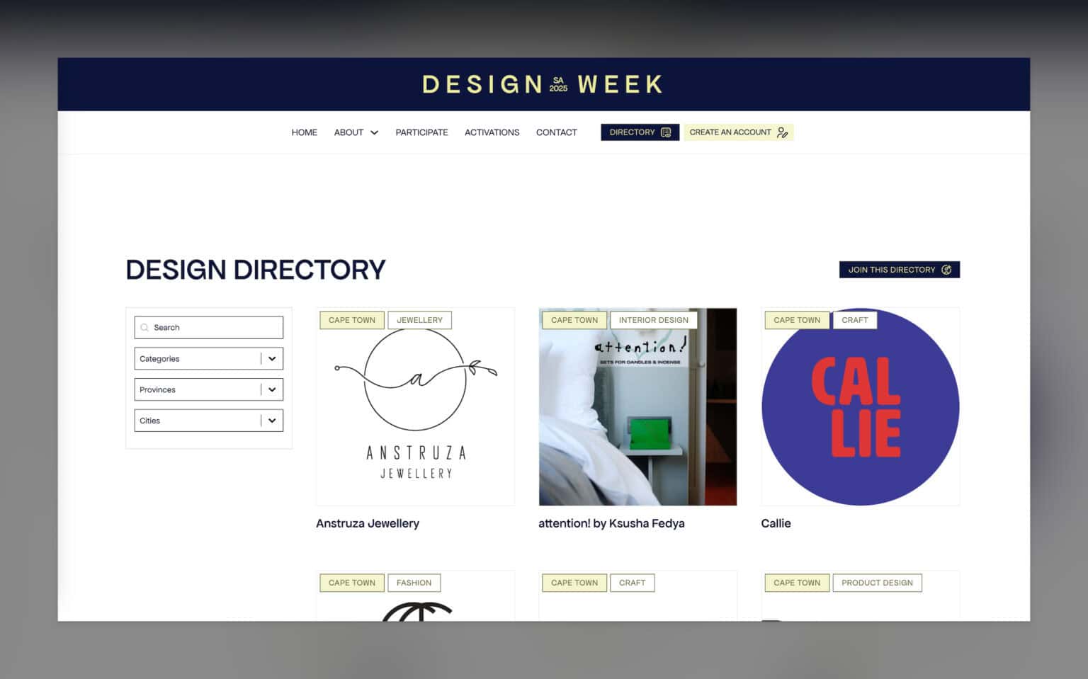 We partnered with Design Week South Africa to convert their website from Elementor to Bricks Builder, improving speed, stability, and design consistency. Along with hosting, we developed a custom Design Directory that allows creatives to register, submit listings, and be discovered through intuitive filtering, creating a faster site and a stronger platform for the South African design community.