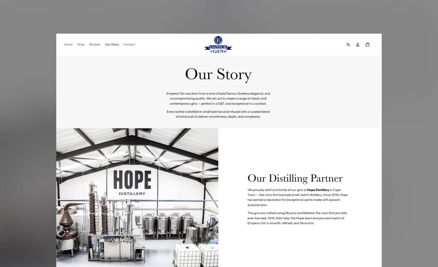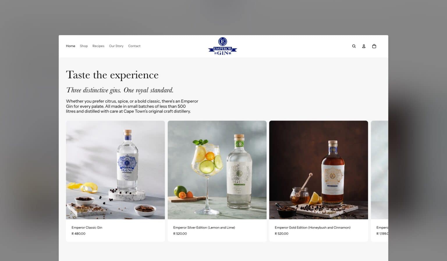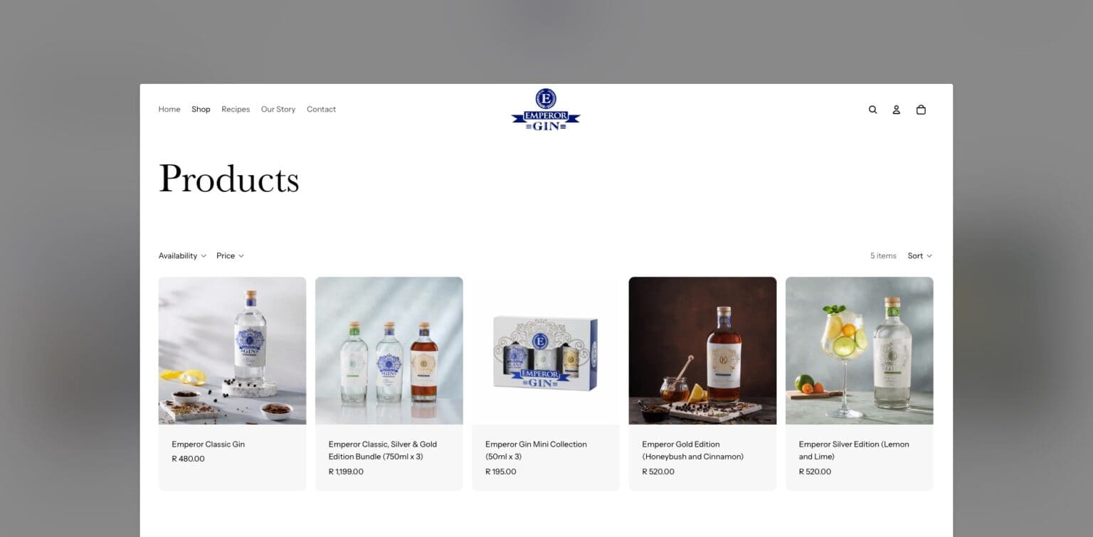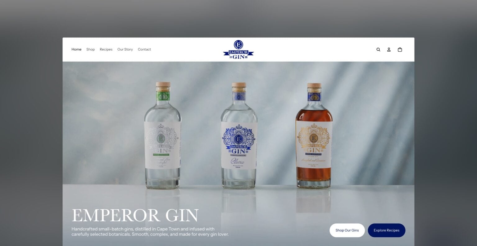 Emperor Gin needed a simple yet sophisticated online store to showcase and sell their small-batch South African gins. We built a streamlined Shopify website that brings the brand to life; clean, intuitive, and mobile-first. The result is an elegant e-commerce experience that lets the product take centre stage, while keeping the path to purchase refreshingly smooth.