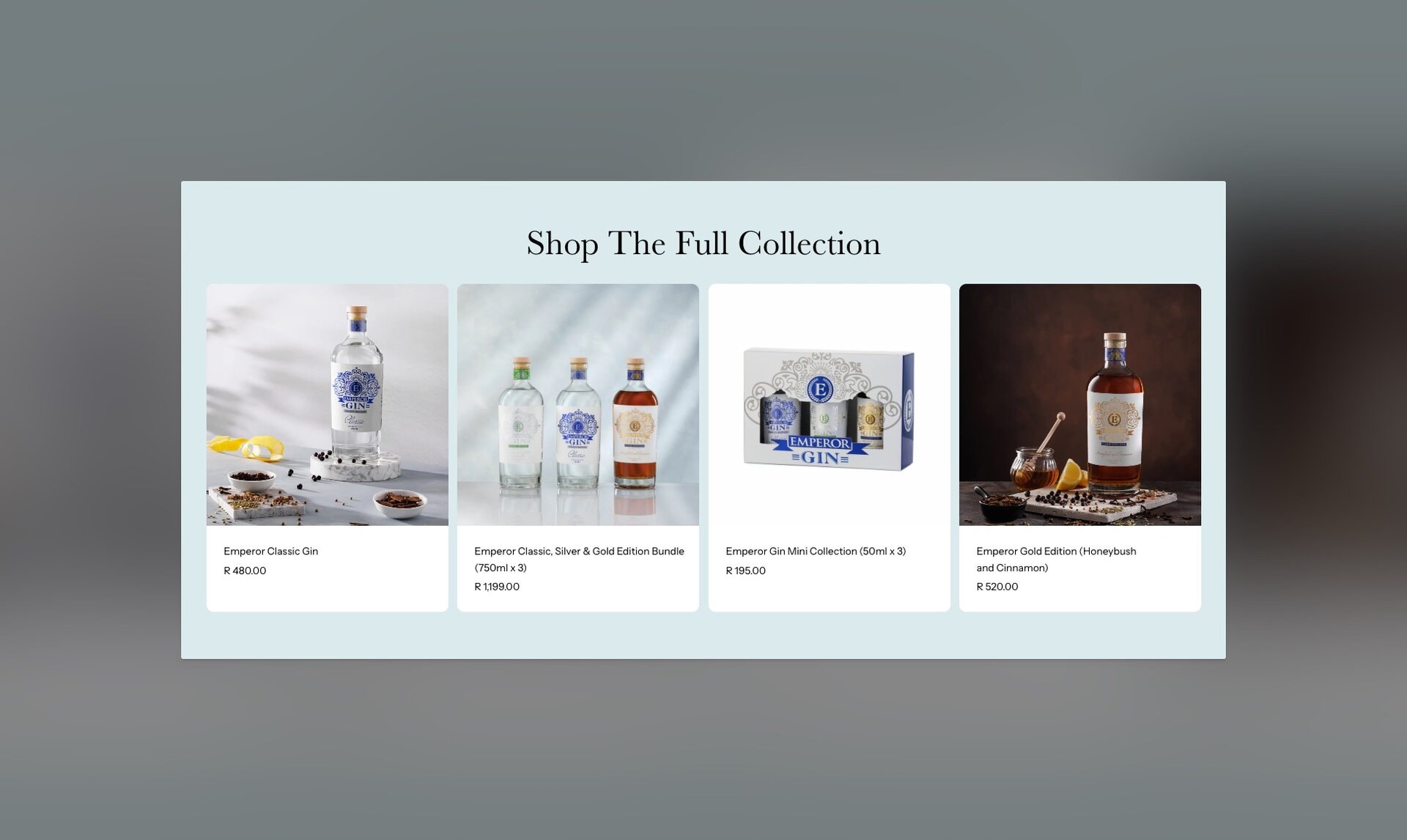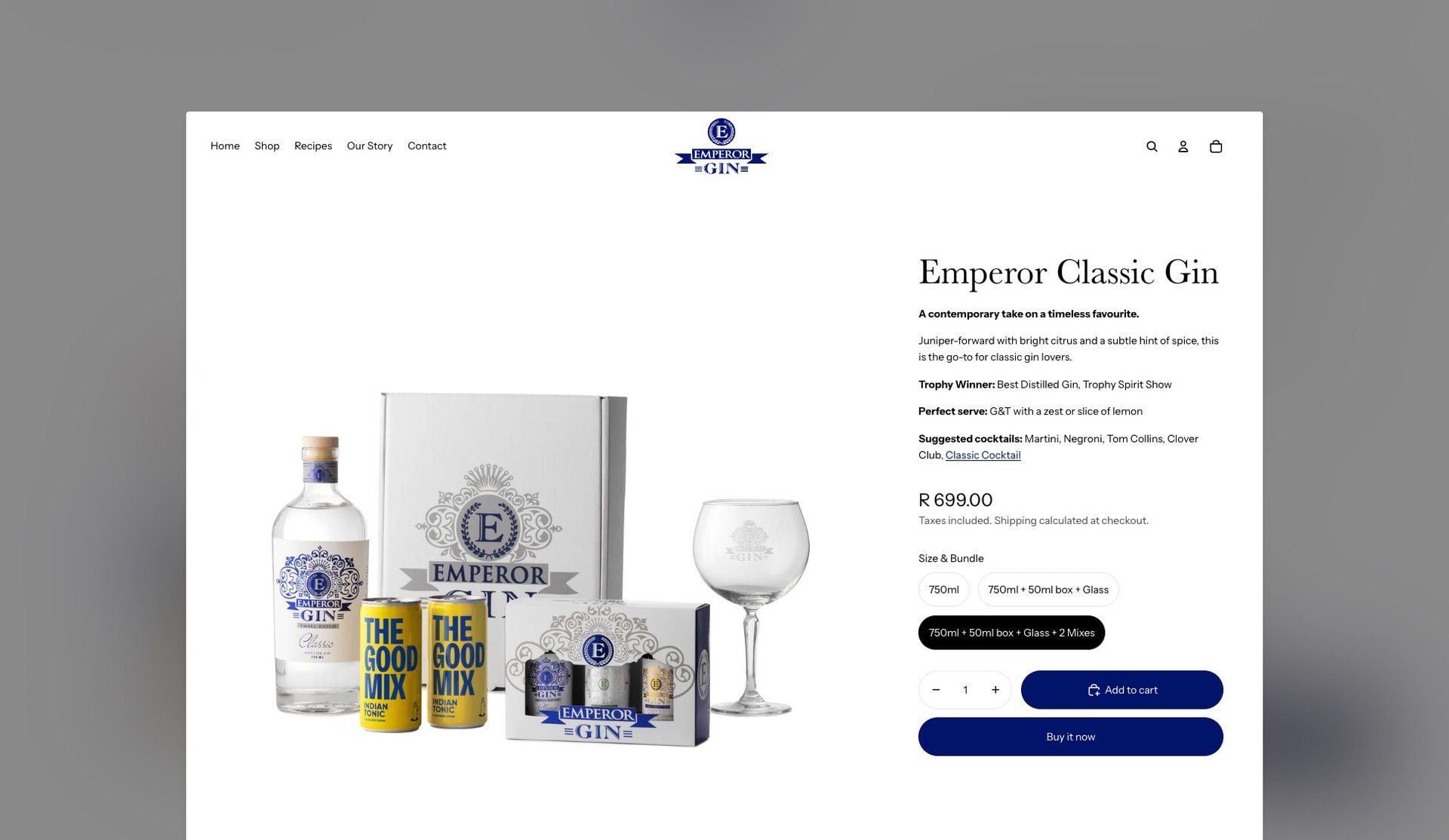 Emperor Gin needed a simple yet sophisticated online store to showcase and sell their small-batch South African gins. We built a streamlined Shopify website that brings the brand to life; clean, intuitive, and mobile-first. The result is an elegant e-commerce experience that lets the product take centre stage, while keeping the path to purchase refreshingly smooth.
