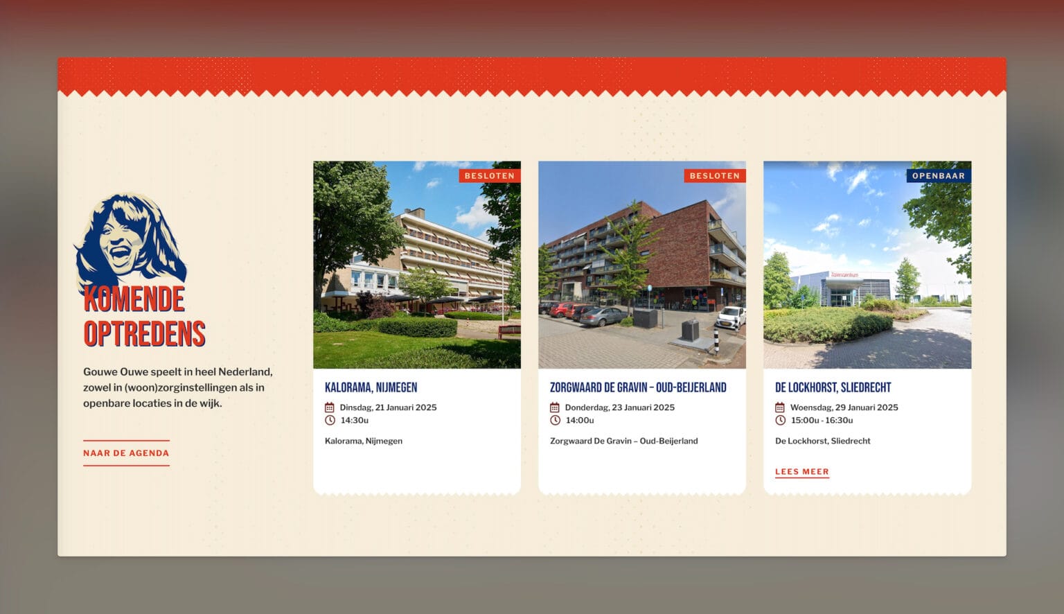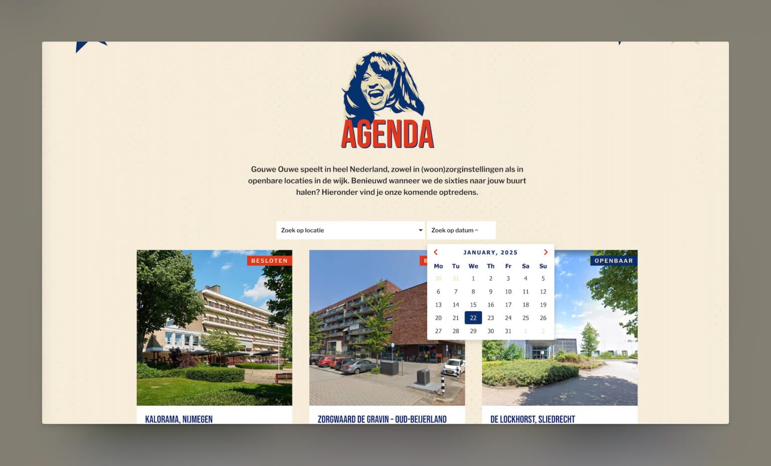 We partnered with this innovative Dutch company, Gouwe Ouwe, that brings the energy of 60s and 70s music to quiet spaces, transforming them into lively dance floors. Gouwe Ouwe creates vibrant dancing pubs in residential care centers, community halls, and libraries, fostering connections and memories. Our website design captured this blend of nostalgia and community spirit, helping them share their unique musical magic with venues across the Netherlands.