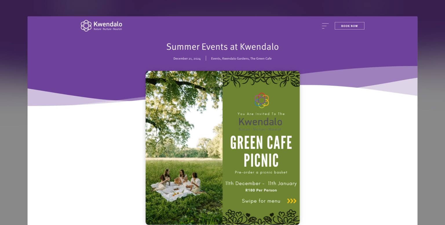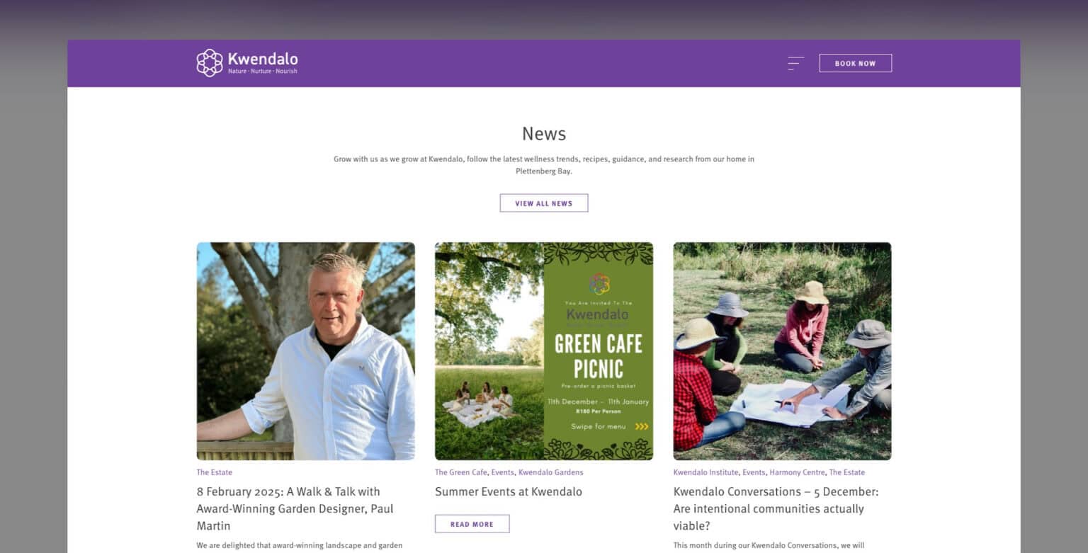 Kwendalo is a 16-hectare sanctuary where nature and wellness intertwine, offering visitors a complete rejuvenation experience in Plettenberg Bay. We developed their digital presence through a thoughtfully designed WordPress platform that mirrors the serenity of their space. The website guides visitors through their diverse offerings—from tranquil gardens and wellness facilities to their green café and accommodation options. Built with a flexible content management system, they can easily update their team and share wellness insights, events and updates through their blog and news section, helping guests stay connected to Kwendalo’s natural rhythms and healing spaces.