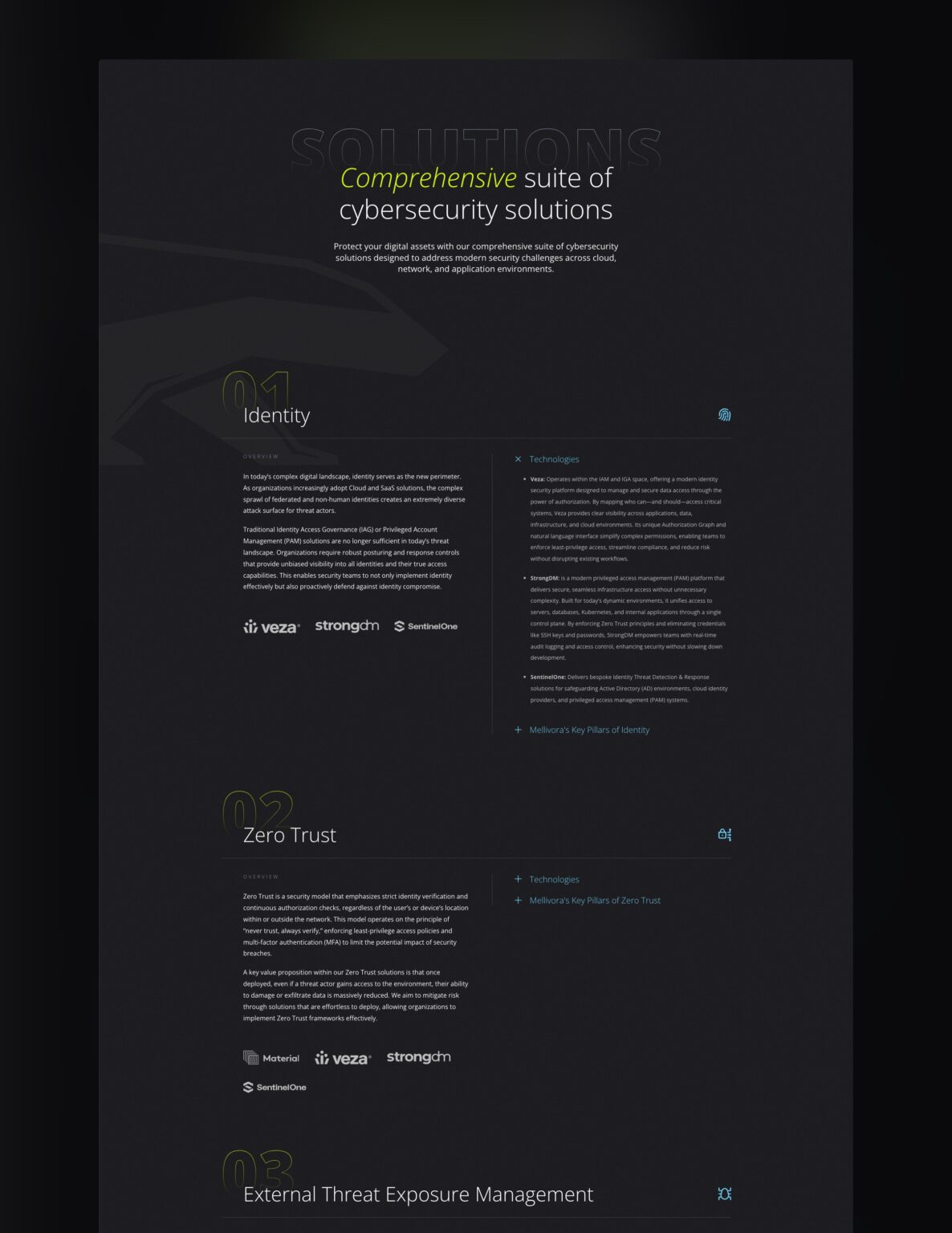 We partnered with Mellivora Technology to design and develop a dynamic new WordPress website that reflects their forward-thinking approach to cybersecurity. Built using Bricks and designed in Figma, the site was brought to life with engaging design elements and smooth interactions throughout. The CMS grants the Mellivora team complete control over content, encompassing team members, success stories, vendors, services, and solutions. The result is a modern, fast, and flexible website that supports both their growth and evolving digital presence.