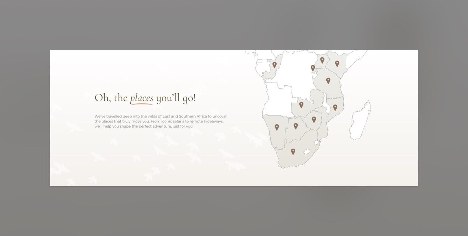 Designed in Figma and built in WordPress using Bricks, the result is a clean, modern, and highly visual platform that lets their exceptional imagery take centre stage. The new site offers a more intuitive journey through destinations and experiences, creating an inspiring and seamless experience for travellers exploring Africa.