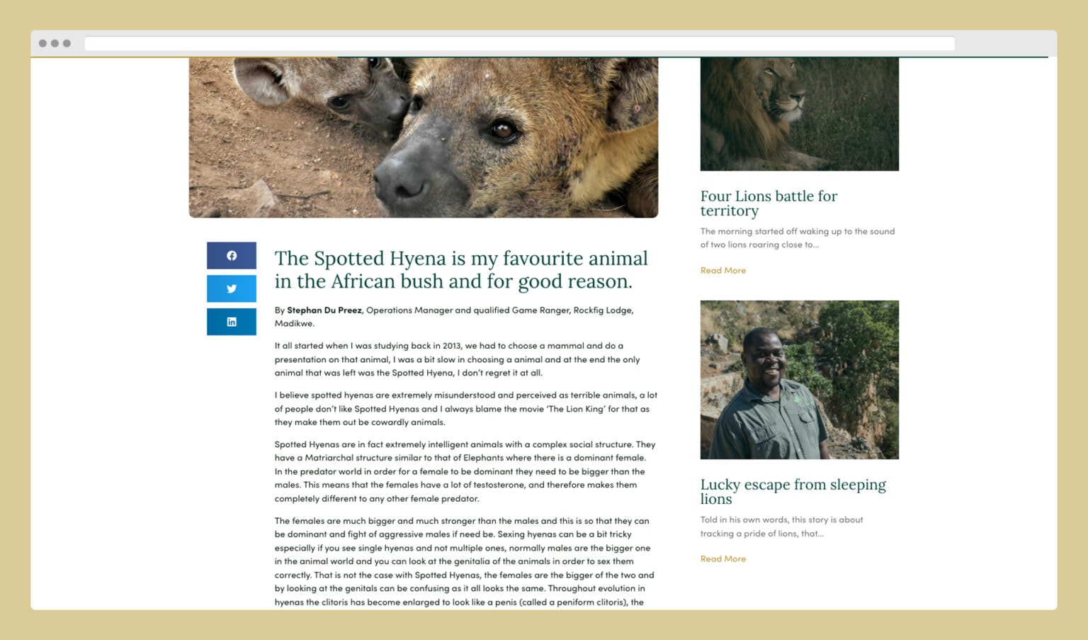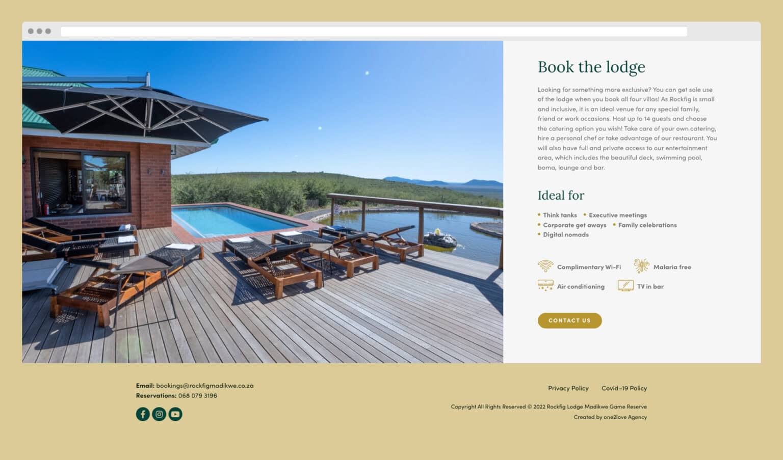 We created this responsive WordPress website for Rockfig Game Reserve to feature the beauty and splendour of their reserve. The site is easy to use and built with a focus on content management without sacrificing design.