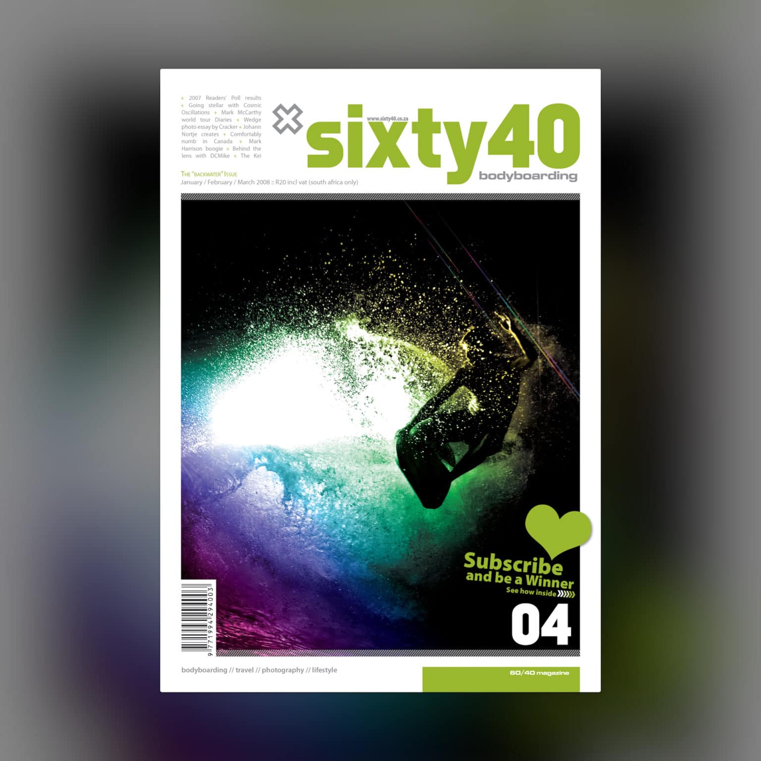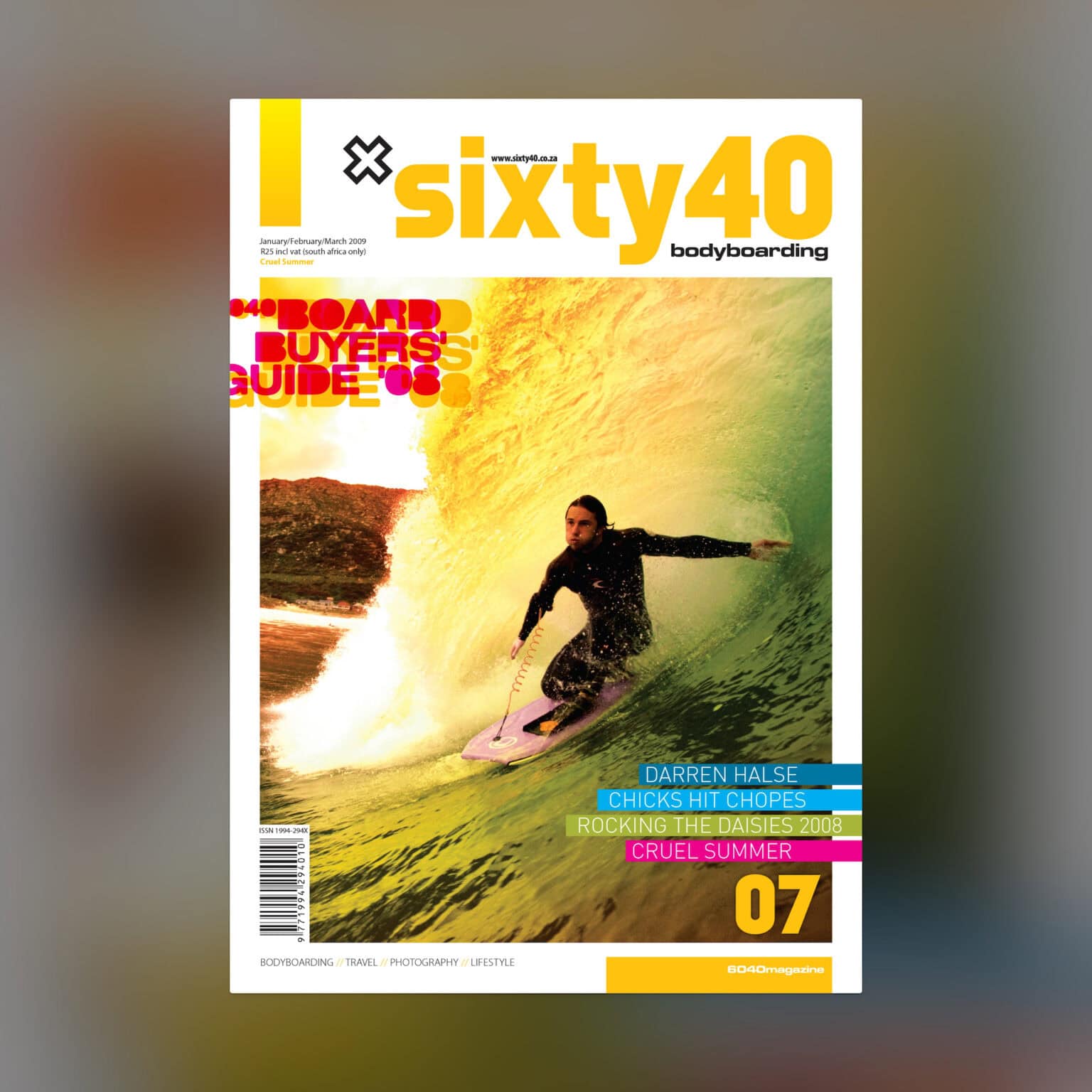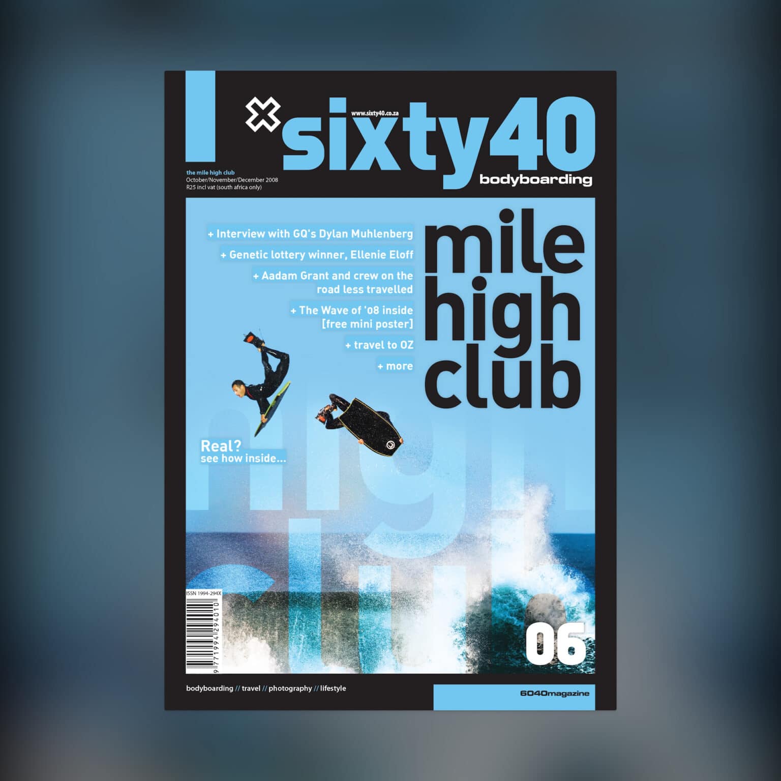 Deeply entrenched in surf culture with Sixty40, South Africa’s iconic bodyboarding magazine, we designed all 22 issues for Sixty40 Bodyboarding magazine. We took on the full creative process—art and creative direction, design and layout, and image editing—bringing each issue to life as a celebration of the sport’s energy, grit, and community.
