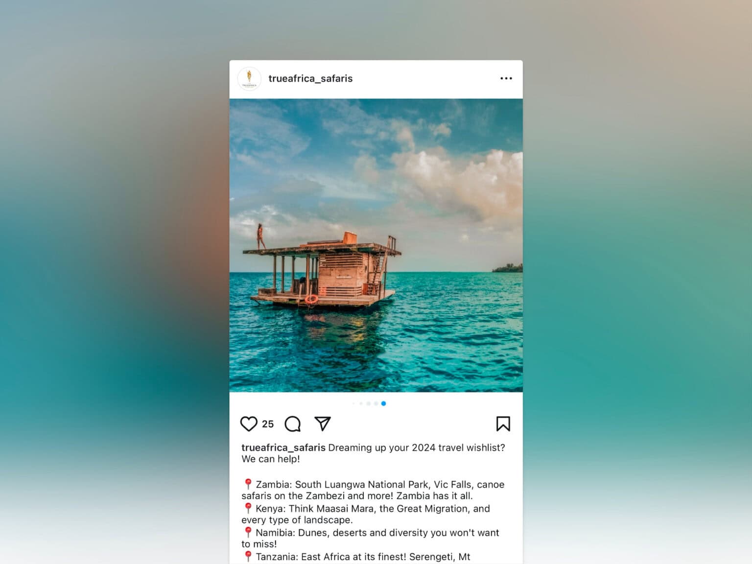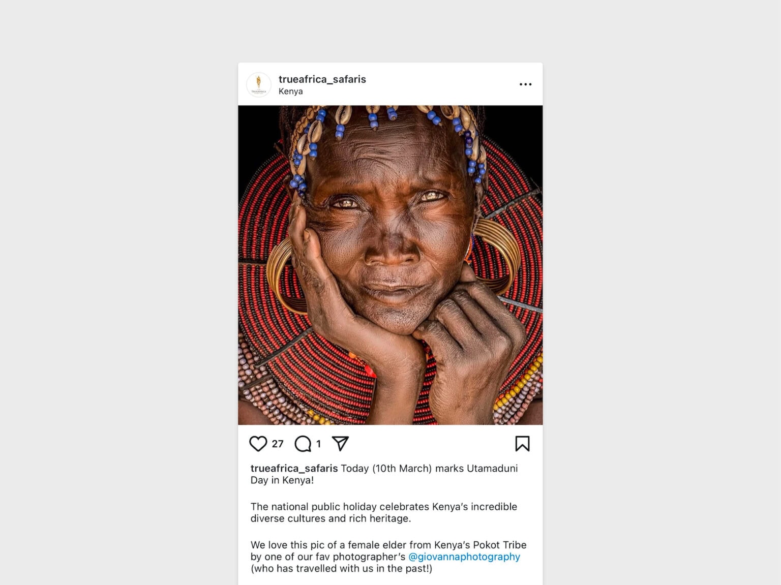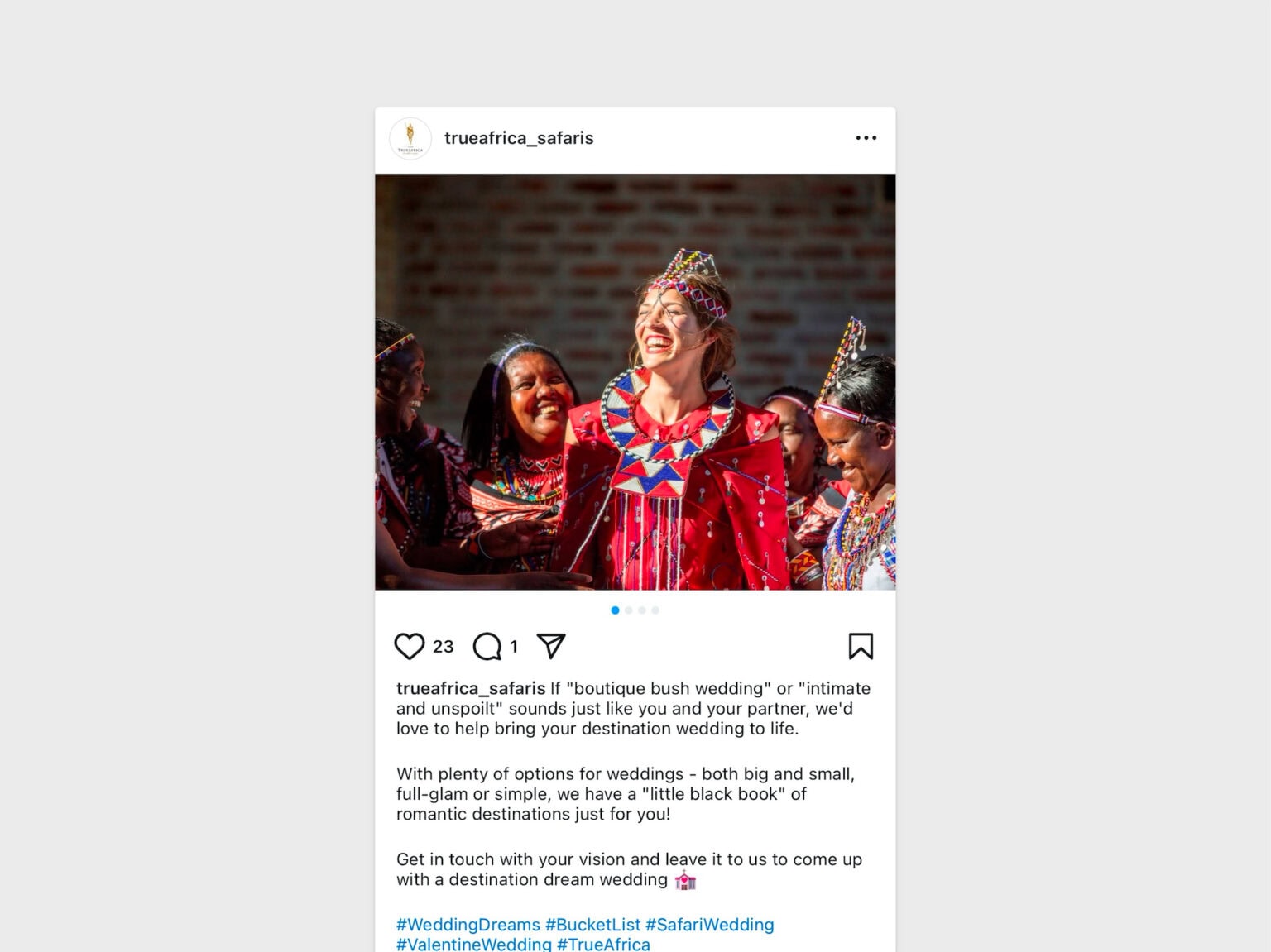 Since 2002, True Africa has been crafting authentic safari experiences that unveil the heart and soul of Africa. As their social media partners, we bring their remarkable journeys to life, sharing intimate wildlife encounters, breathtaking landscapes, and meaningful cultural connections that make their safaris truly unforgettable. Through strategic storytelling and captivating content, we help adventure seekers discover the magic of True Africa’s bespoke experiences.